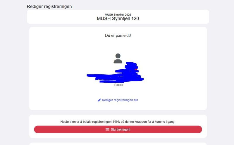 Fristen for å betale startkontingent for MUSH Synnfjell 2026 er satt til 15.11.25, jfr vilkårene beskrevet i LiveRace.